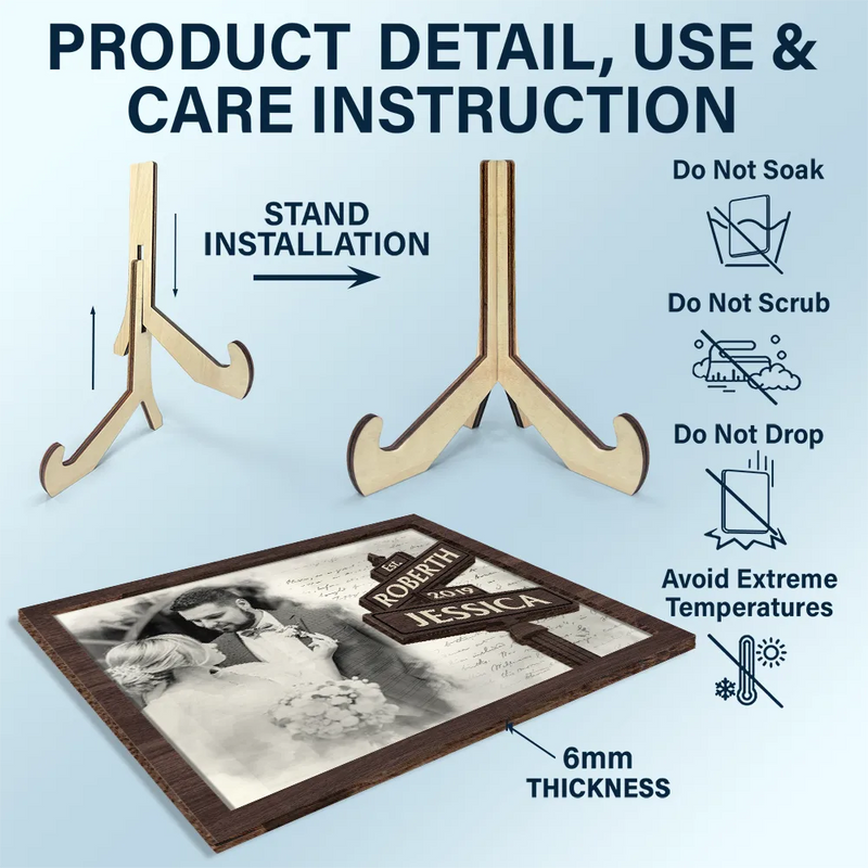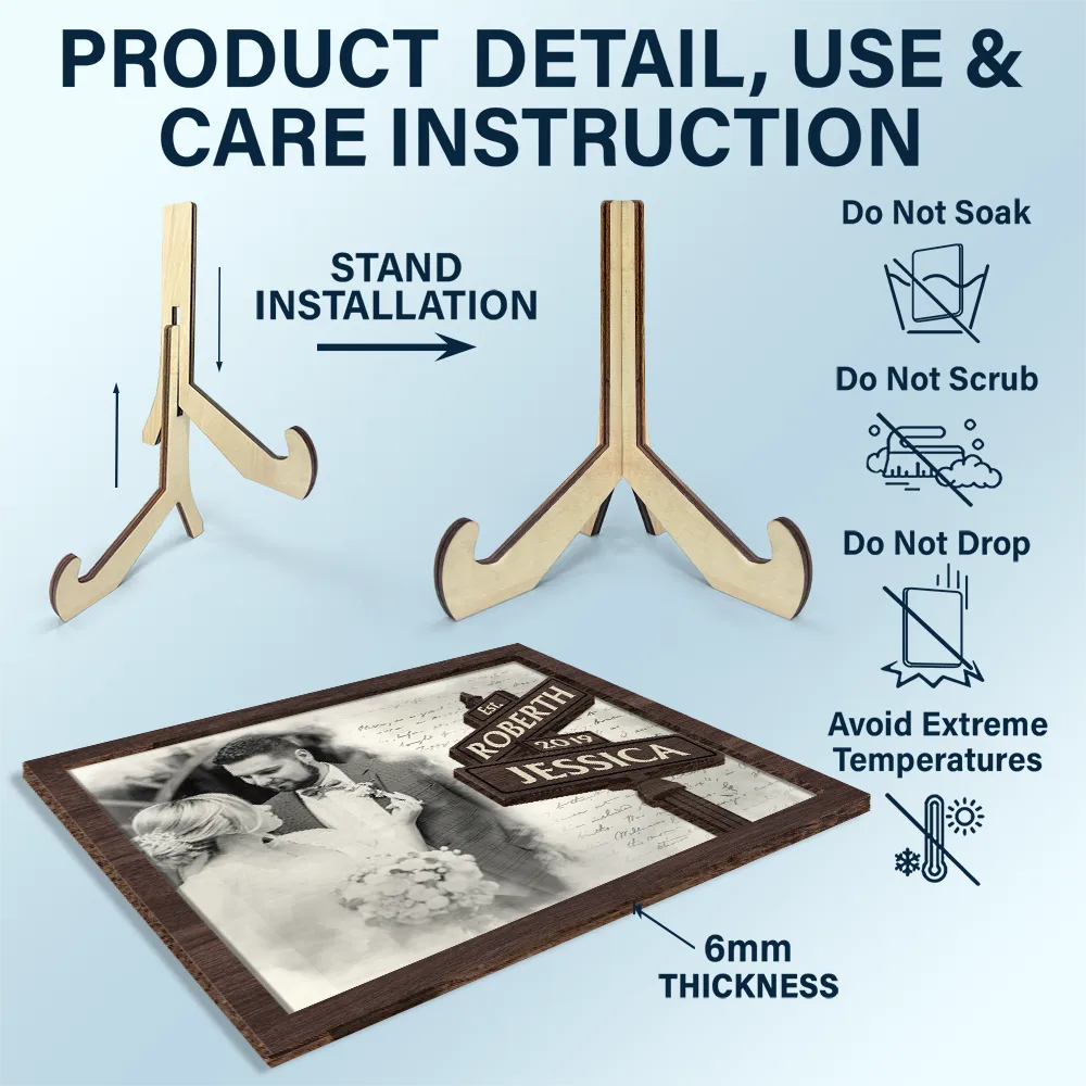 Custom Photo First Anniversary Gift For Couples Family - Personalized 2-Layered Wooden Plaque With Stand