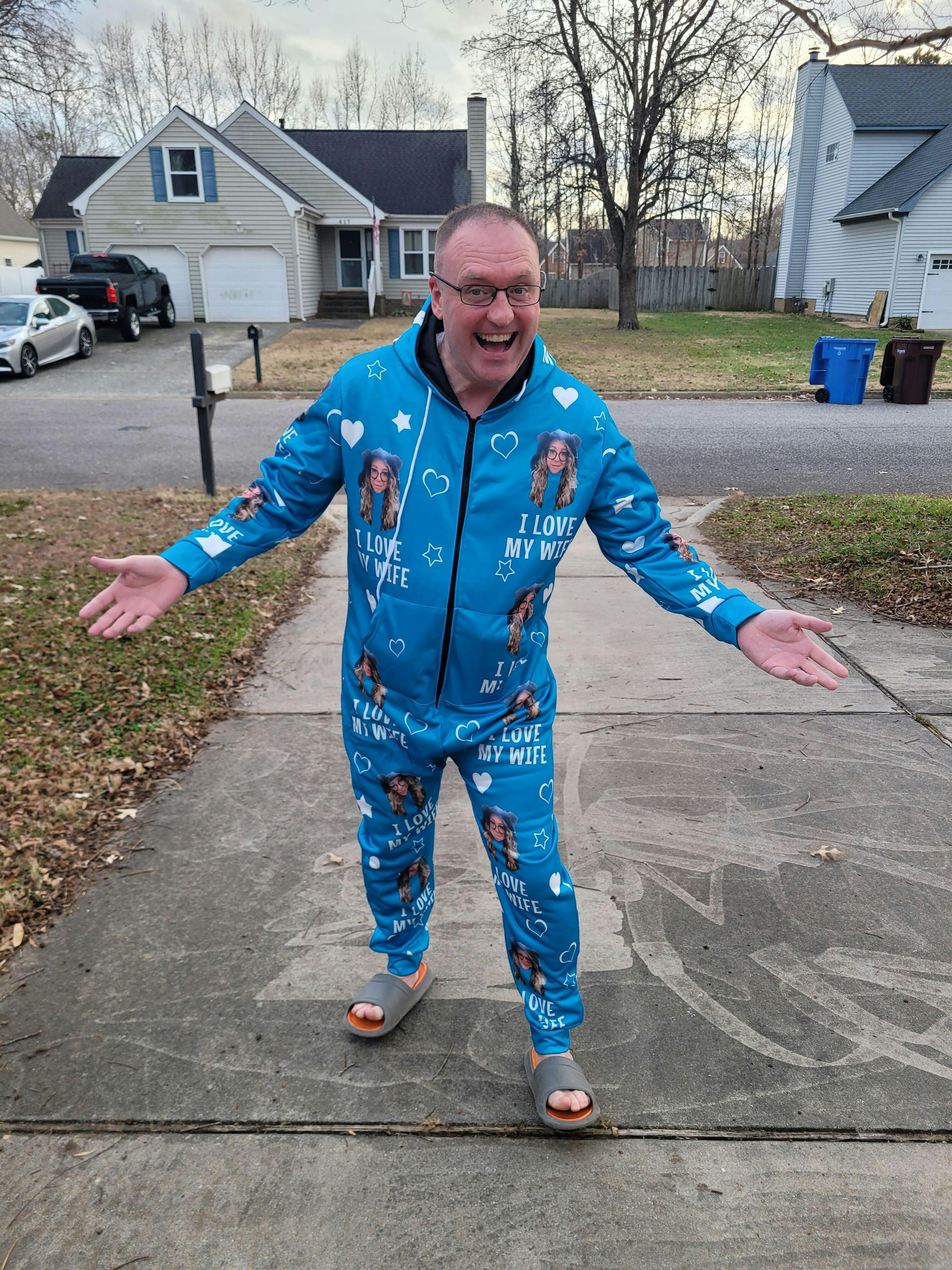 Custom Photo Funny I Love My Wife Husband - Personalized Overall Onesie Hooded Jumpsuit