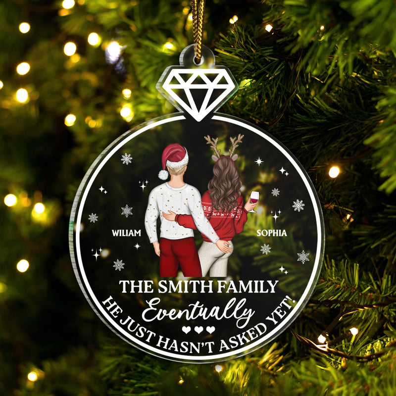 Family Name Eventually He Just Hasn't Asked Yet - Christmas Gift For Couple, Boyfriend, Girlfriend - Personalized Custom Shaped Acrylic Ornament