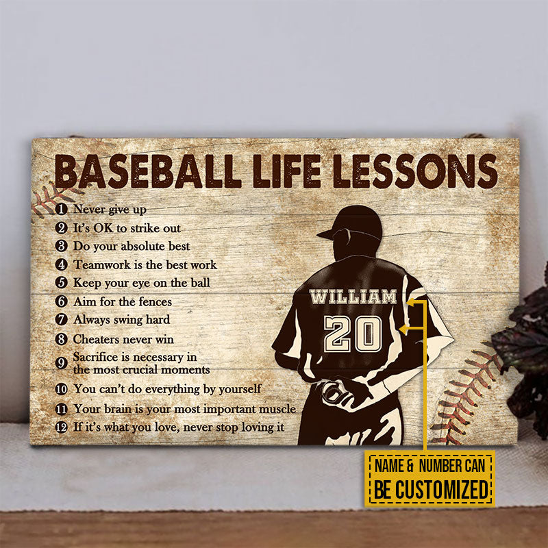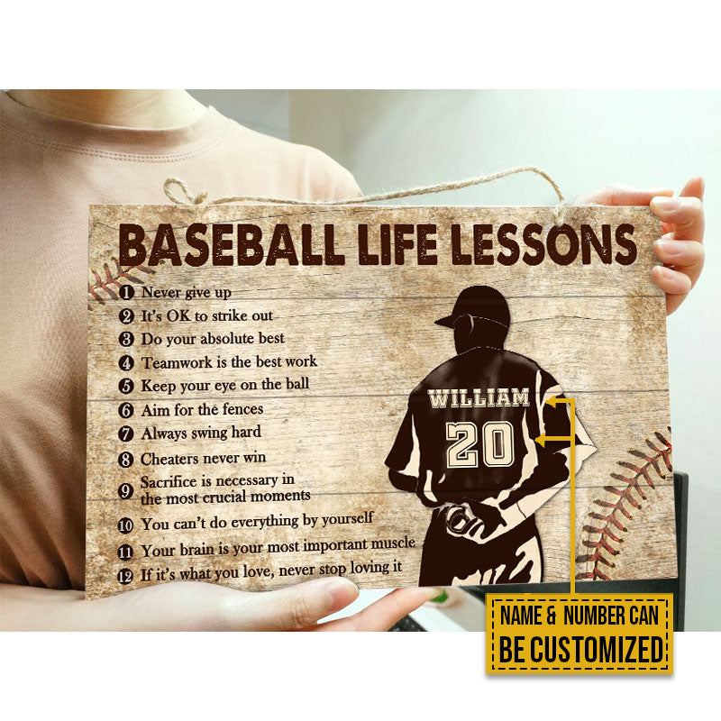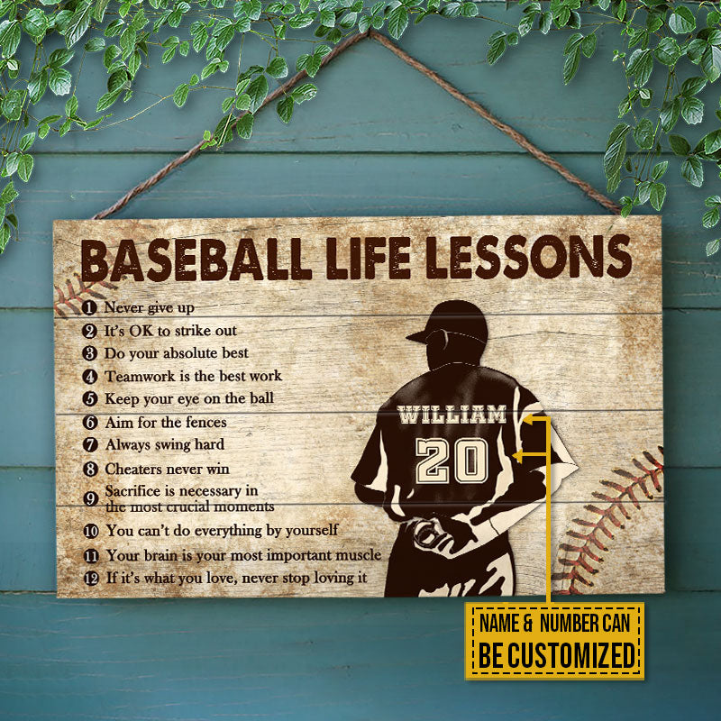 Personalized Baseball Pitcher Life Lessons Custom Wood Rectangle Sign