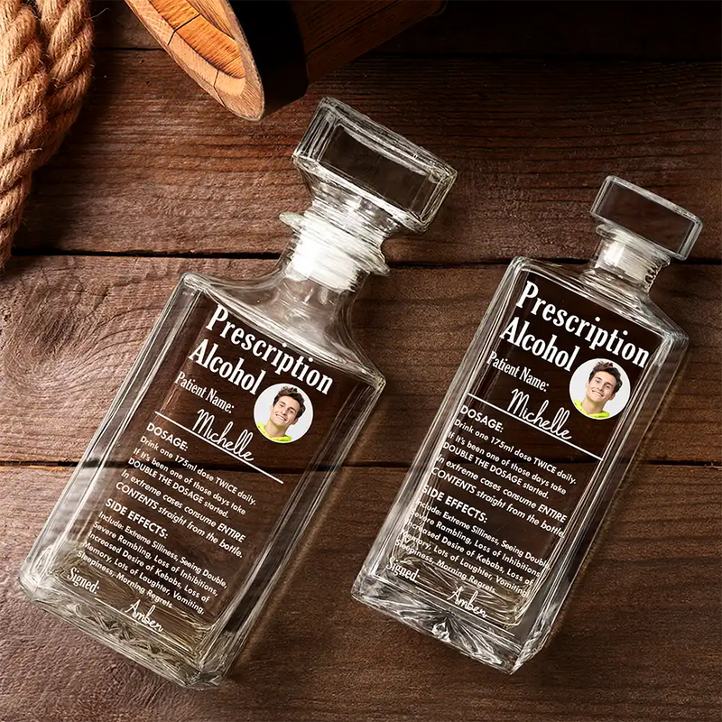 Custom Photo Funny Prescription Drink One Measure Daily - Personalized Square Whiskey Bottle