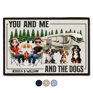 You And Me And The Dogs Camping Cartoon - Personalized Doormat