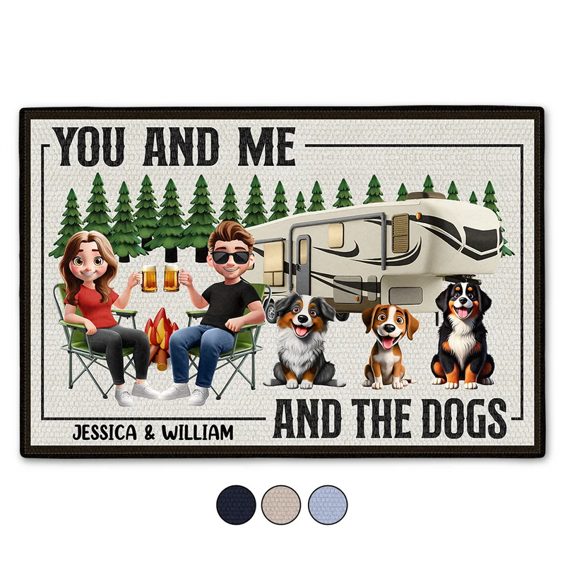 Make your campsite feel like home with the You And Me And The Dogs Camping Cartoon - Personalized Doormat – a joyful gift for couples, dog lovers, and anyone who cherishes outdoor adventures with their furry friends. This unique doormat is a delightful gift for Birthdays, Anniversaries, Christmas, Thanksgiving, Father’s Day, Mother’s Day, or just because.