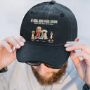 A Girl And Her Dogs - Personalized Vintage Washed Denim Cap