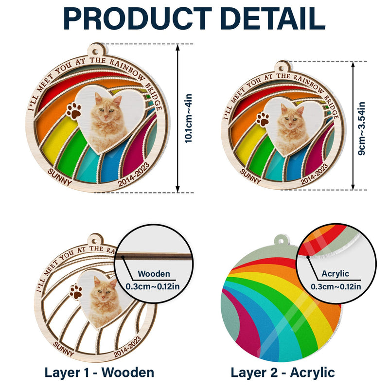 Custom Photo Dog Cat A Piece Of My Heart Is At The Rainbow Bridge - Pet Memorial Gift, Christmas Gift - Personalized Suncatcher Ornament