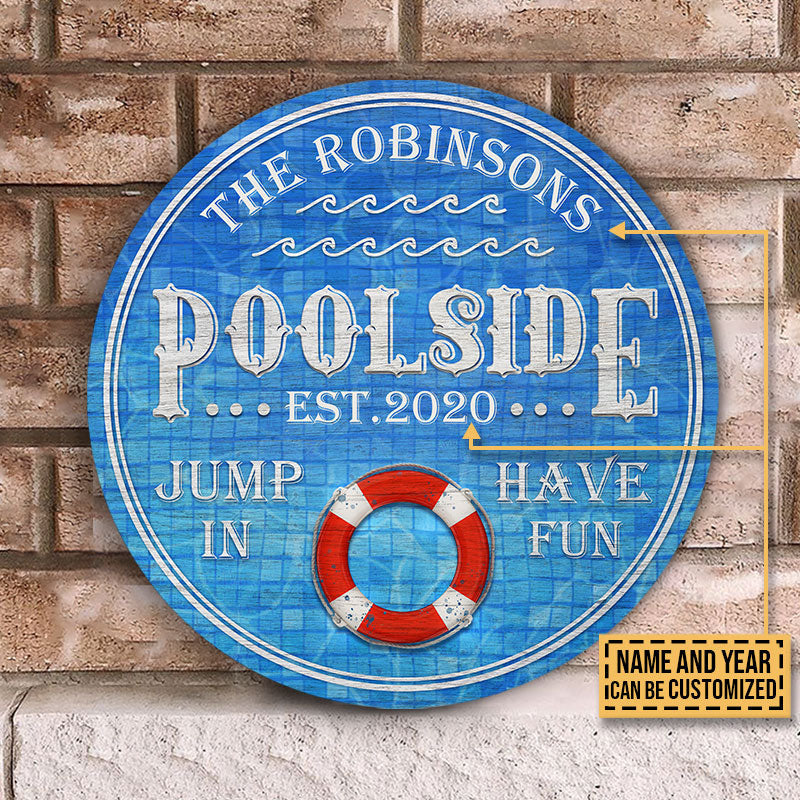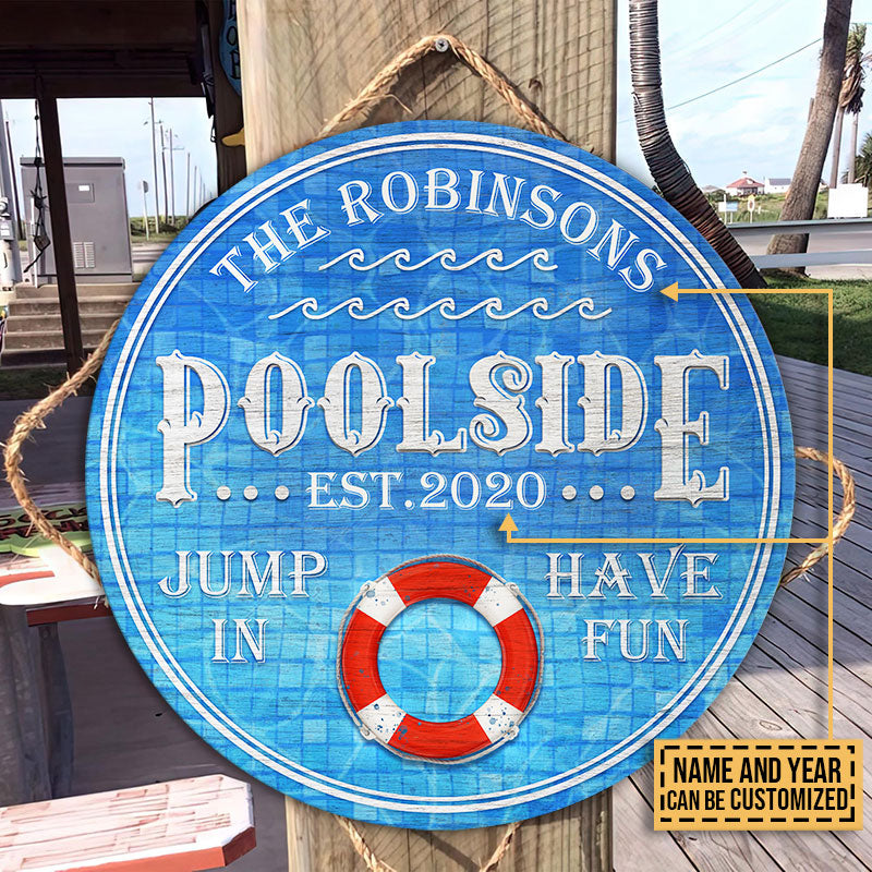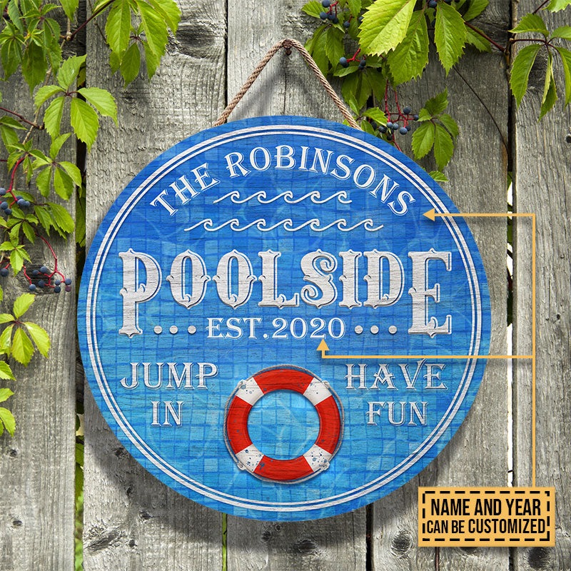 Personalized Swimming Pool Jump In Custom Wood Circle Sign