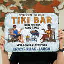 Poolside Grilling Listen To The Good Music Couple Husband Wife Pride - Backyard Sign - Personalized Custom Classic Metal Signs