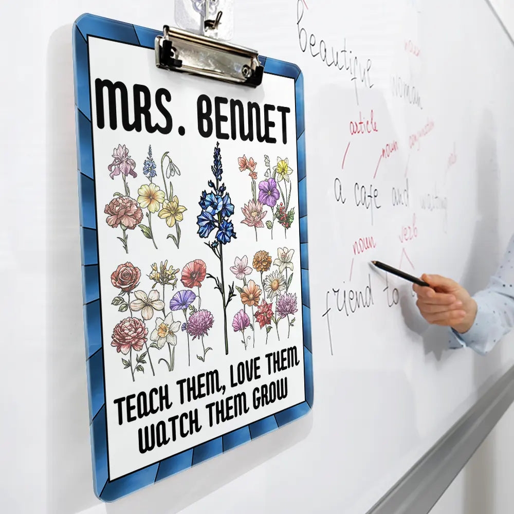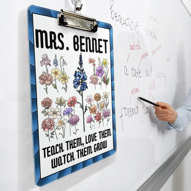 Discover the perfect classroom companion with the Birth Flower Stained Glass Teacher's Garden Watch Them Grow - Personalized Acrylic Clipboard! This delightful gift for teachers, educators, or even yourself is ideal for Thanksgiving, birthdays, Christmas, Mother's Day, or the start of a new school year.