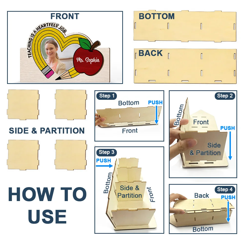 Custom Photo Teaching Is A Heartfelt Job Teacher - Personalized Wooden Pen Pencil Holder