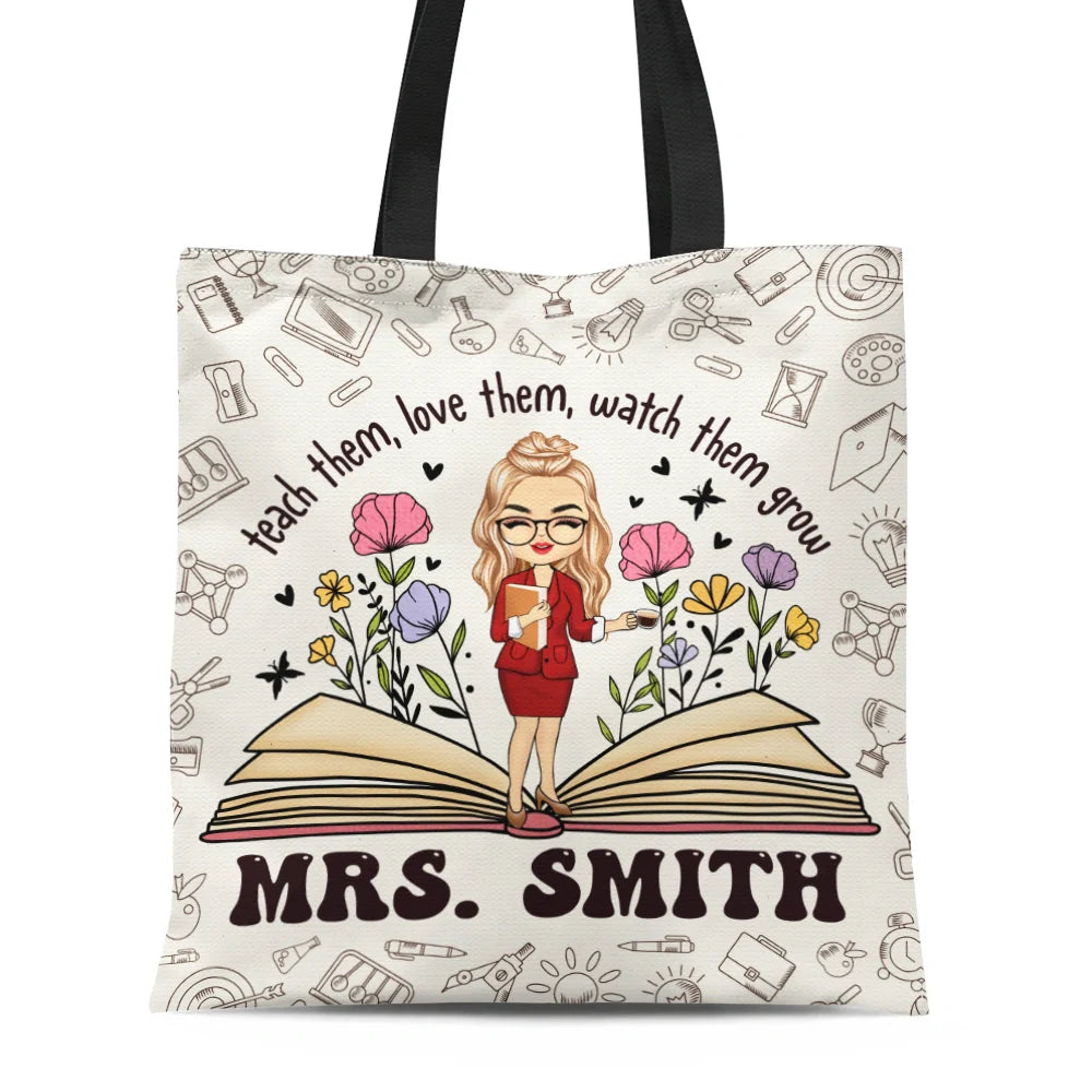 Teach Them Love Them Watch Them Grow Teacher - Personalized Zippered Canvas Bag