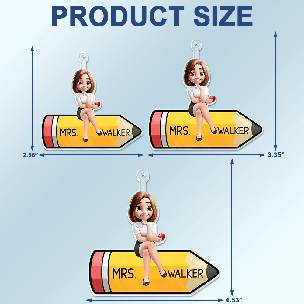 Teacher Sitting On The Pencil - Personalized Acrylic Car Hanger
