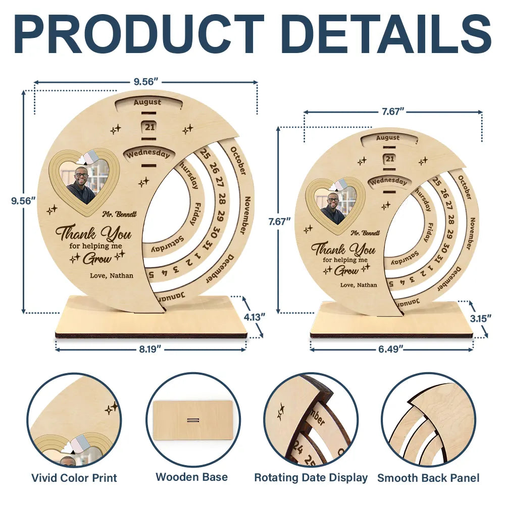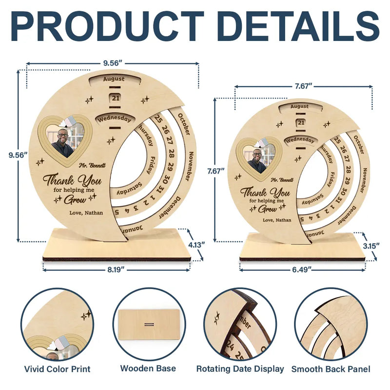 Custom Photo Thank You Teacher For Shaping Little Minds - Personalized Spinning Perpetual Desk Calendar