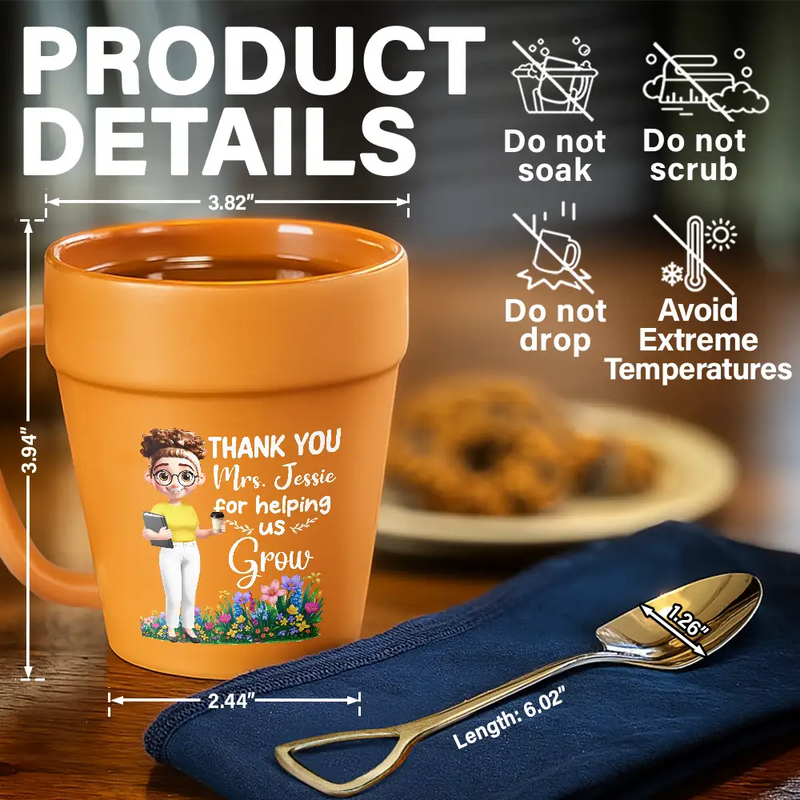 Thank You Teacher For Helping Me Grow - Personalized Plant Pot Ceramic Mug