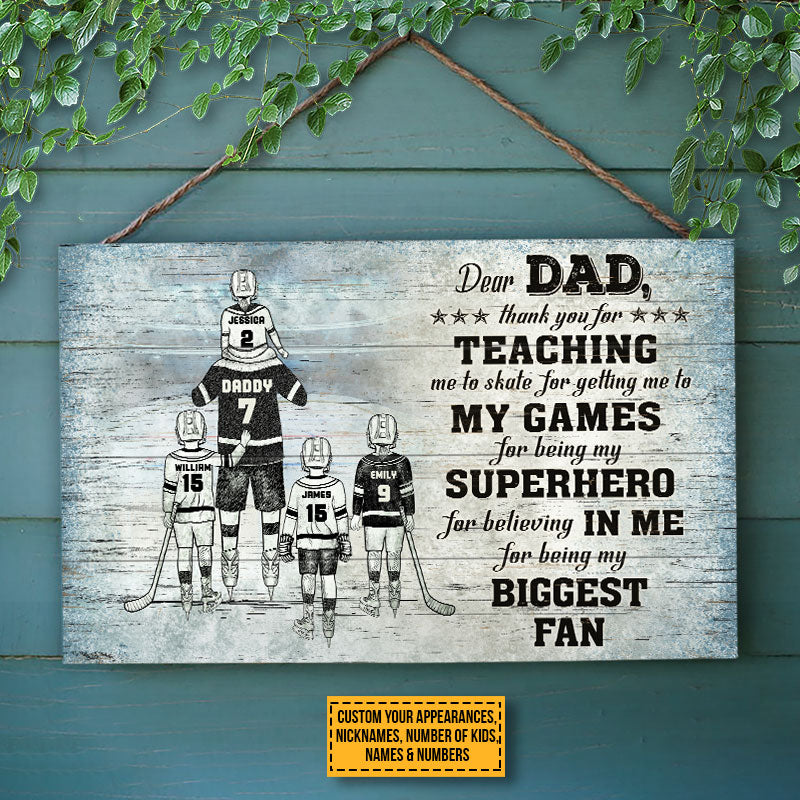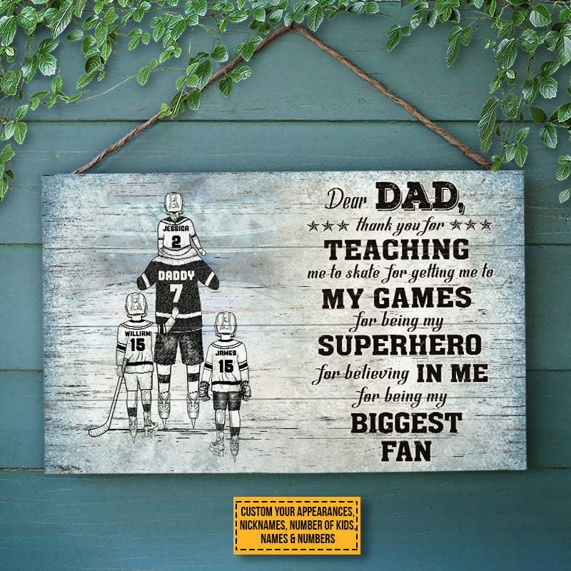 Personalized Hockey Dad And Child Thank You Custom Wood Rectangle Sign