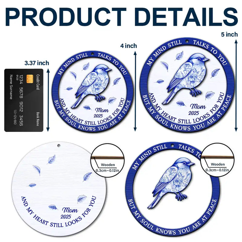 Toile Memorial Bird My Mind Still Talks To You - Personalized 2-Layered Wooden Ornament