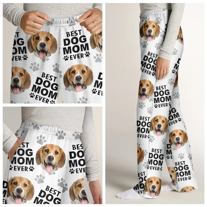 Custom Photo Best Dog Dad Ever Funny Pattern Family - Personalized Pajama Pants