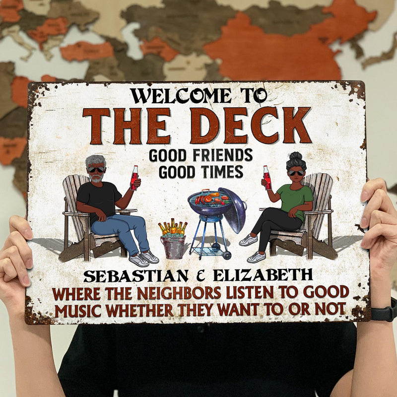 Patio Grilling Listen To The Good Music Couple Husband Wife - Backyard Sign - Personalized Custom Classic Metal Signs