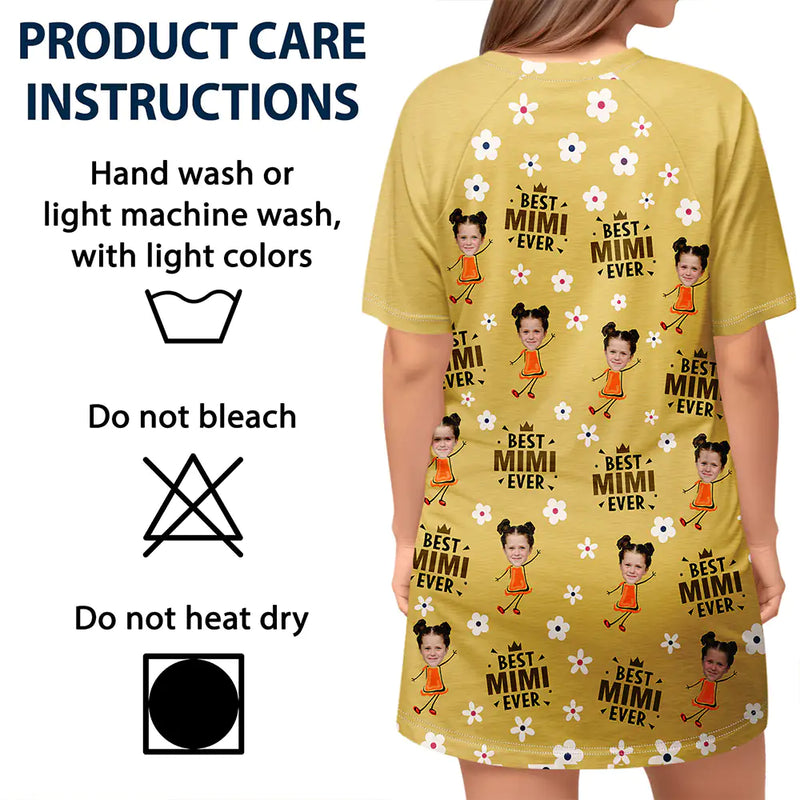 Custom Photo Best Mom Grandma Ever Flower Pattern - Personalized Women's Sleep Tee