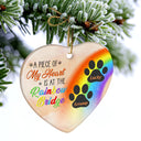 A Piece Of My Heart Is At The Rainbow Bridge - Dog Memorial Gift - Personalized Custom Heart Ceramic Ornament