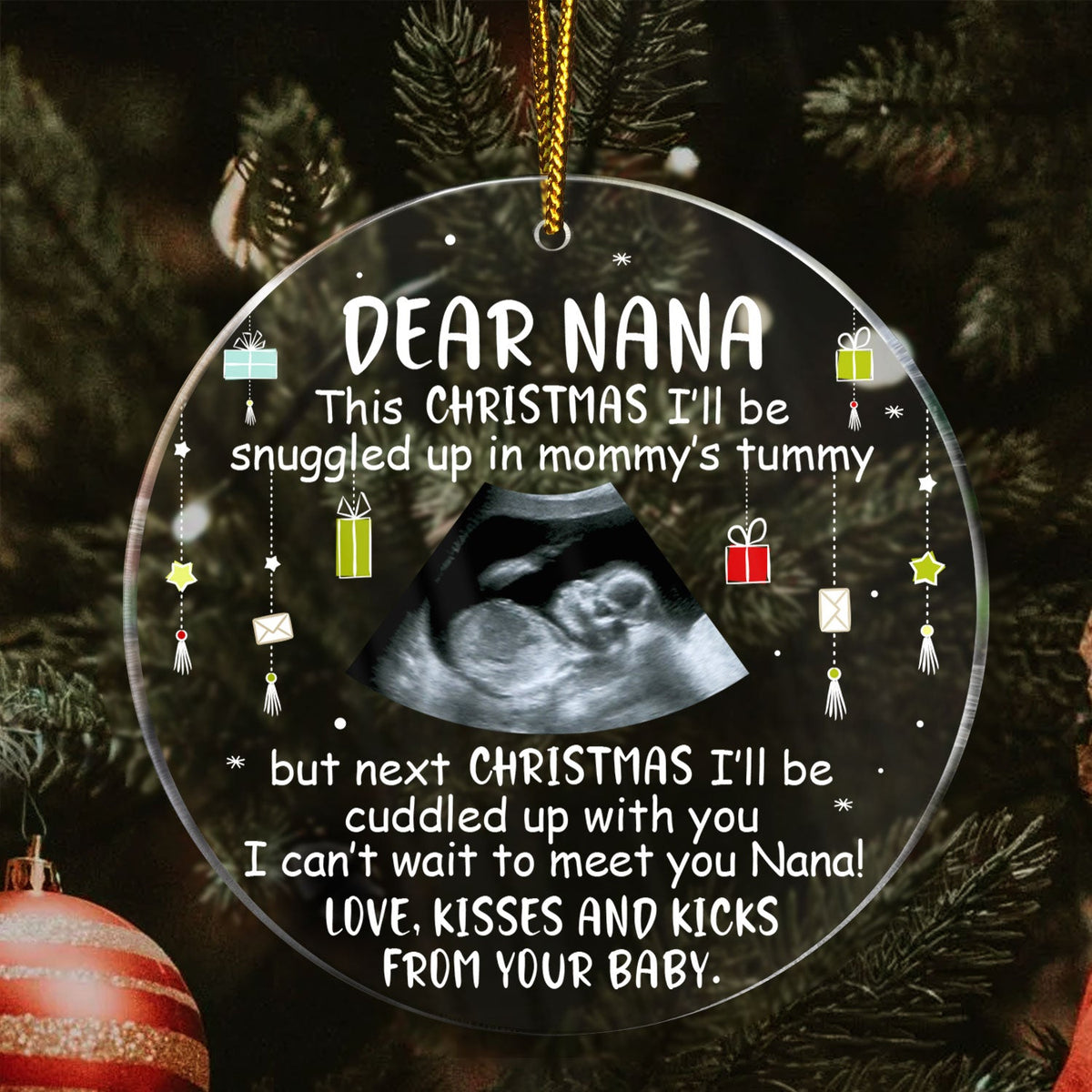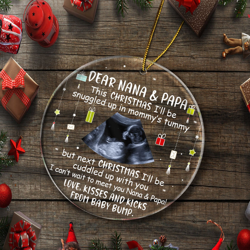 Custom Photo Baby Bump To Daddy, Mommy - Christmas Gift For Mom, Dad, New Parents - Personalized Circle Acrylic Ornament