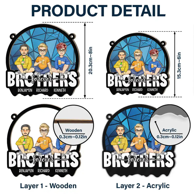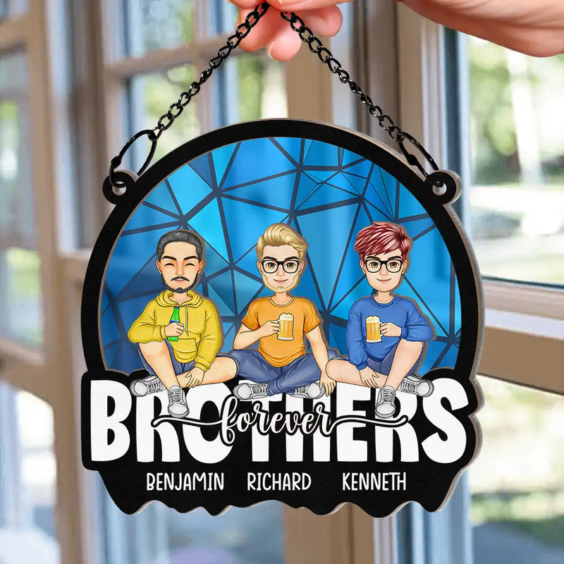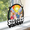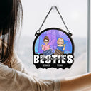 Cartoon Besties Friends Sitting Together - Personalized Window Hanging Suncatcher Ornament