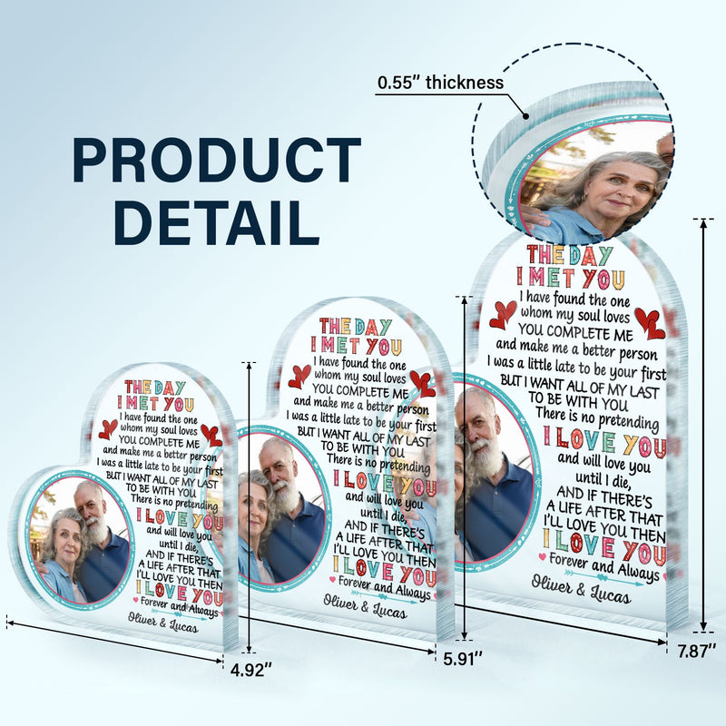 Custom Photo The Day I Met You I Have Found Husband Wife - Gift For Couples - Personalized Custom Heart Shaped Acrylic Plaque