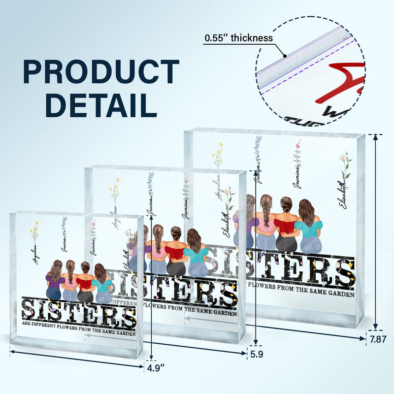 Different Flowers - Gift For Sisters - Personalized Square Shaped Acrylic Plaque