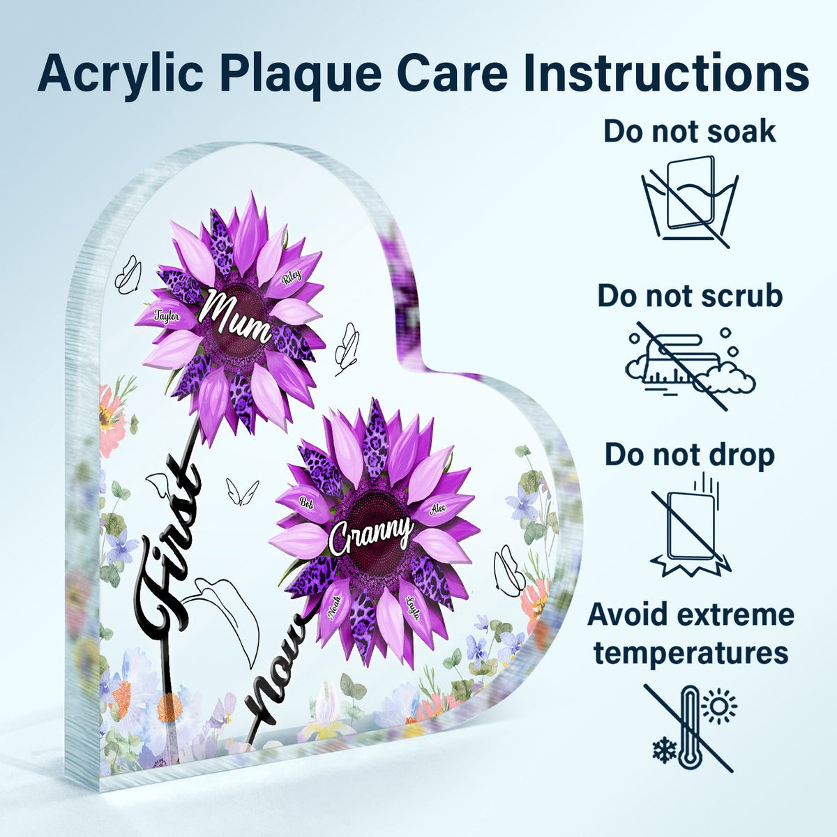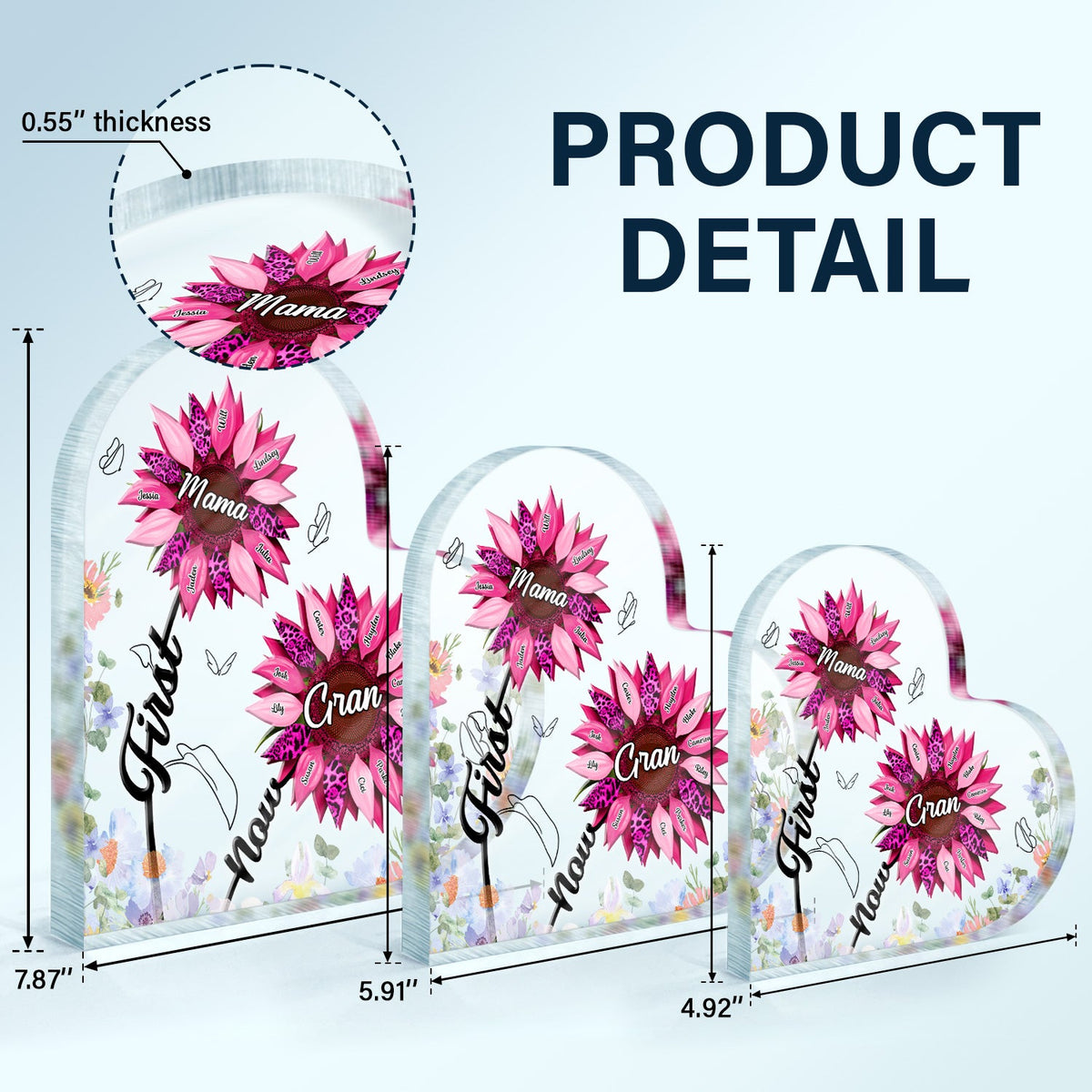 First Mom Now Grandma - Gift For Mothers, Grandmas, Aunties - Personalized Heart Shaped Acrylic Plaque