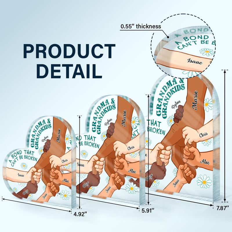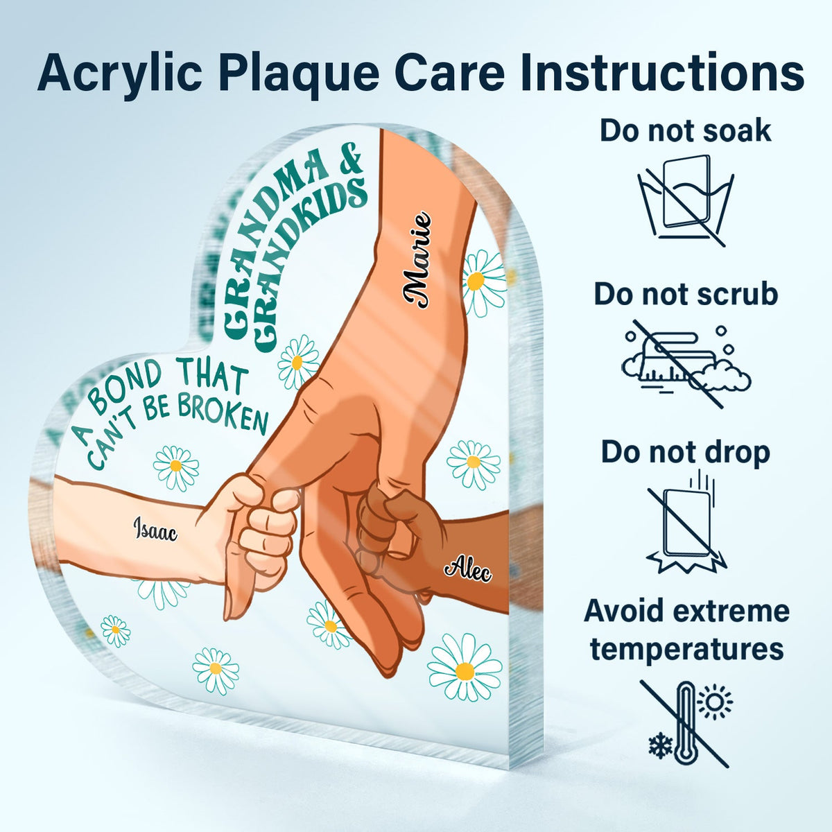 Grandma And Grandkid A Bond That Can't Be Broken - Birthday, Loving Gift For Mom, Mother, Grandmother, Grandparents, Family - Personalized Custom Heart Shaped Acrylic Plaque