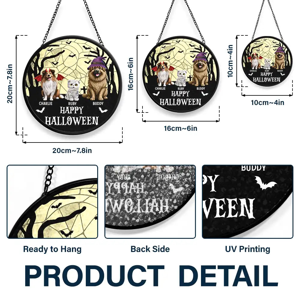 Happy Meowloween Halloween Pets - Personalized Stained Glass Window Hanging Suncatcher