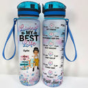 Travel Chibi Girl Living My Best Life - Personalized Custom Water Tracker Bottle