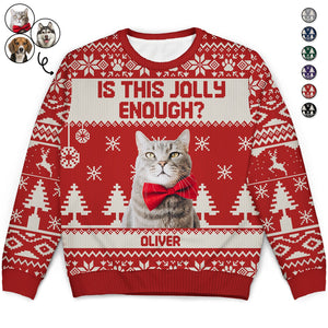 Custom Photo Is This Jolly Enough - Christmas Gift For Dog, Cat, Pet Lovers - Personalized Unisex Ugly Sweater