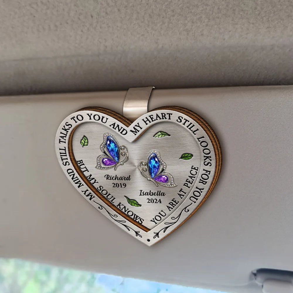 Memorial My Mind Still Talks To You Heart Shaped - Personalized Custom Shaped Car Visor Clip