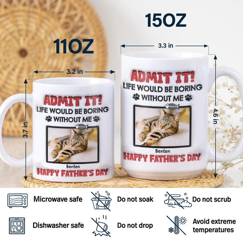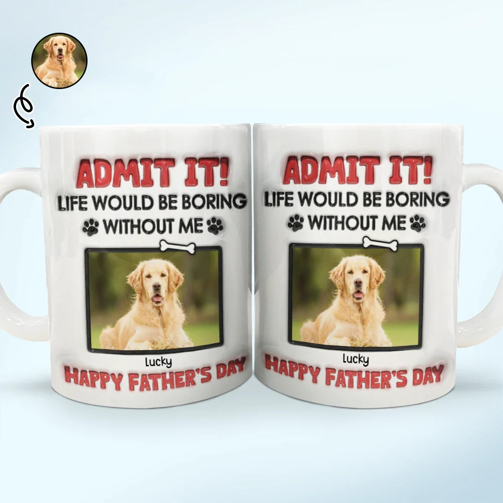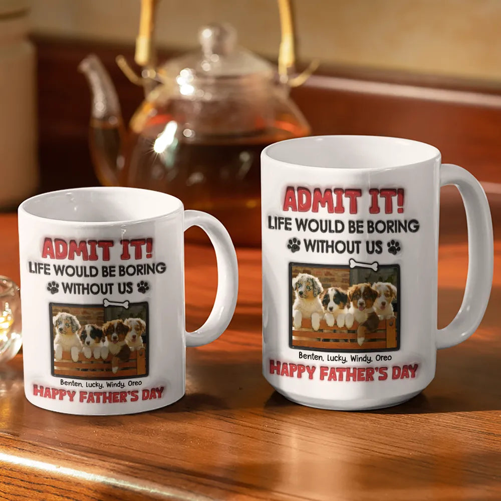 Custom Photo Admit It Life Would Be Boring Pet - 3D Inflated Effect Printed Mug, Personalized White Edge-to-Edge Mug