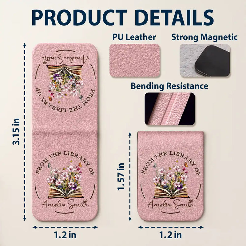 From The Library Of, Gift For Book Lovers - Personalized Leather Magnetic Bookmark