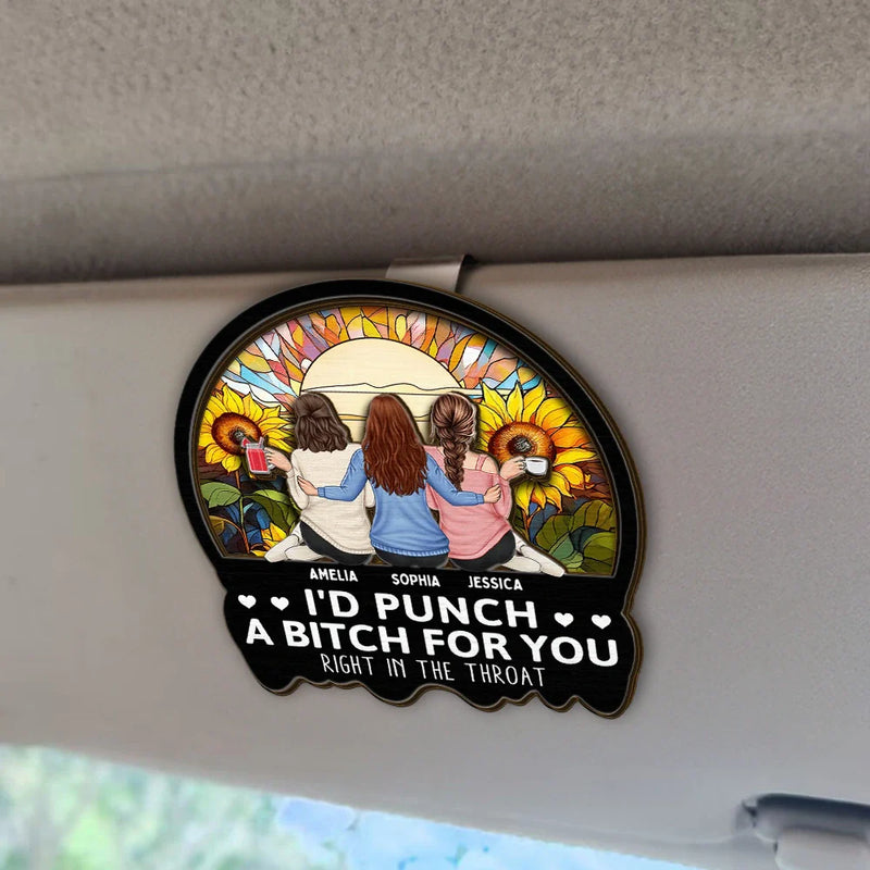 Right In The Throat Besties Sisters - Personalized Custom Shaped Car Visor Clip