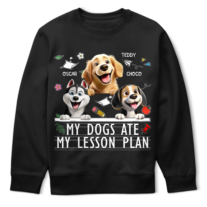 Bring laughter to teaching days with the My Dog Ate My Lesson Plan Funny - Personalized T Shirt. This awesome and delightful gift for teachers, dog lovers, pet moms, or dads is ideal for Back to School, Teacher Appreciation, Birthday, Christmas, Mother’s Day, Father’s Day, or Thanksgiving.