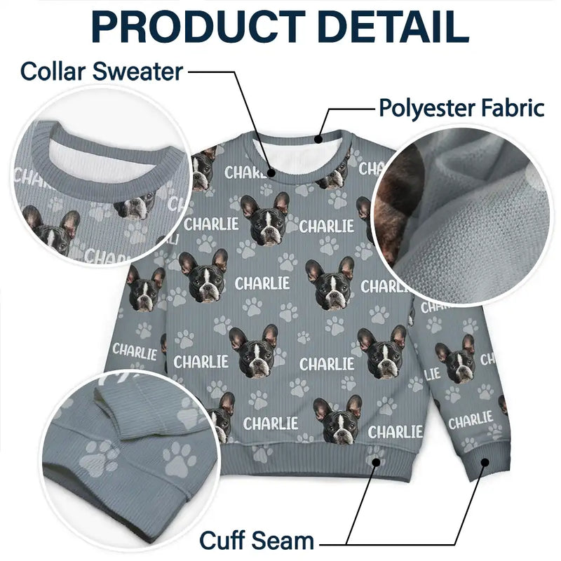 Custom Photo Funny Pet Face Pattern Dog Cat Family - Personalized Unisex Ugly Sweater