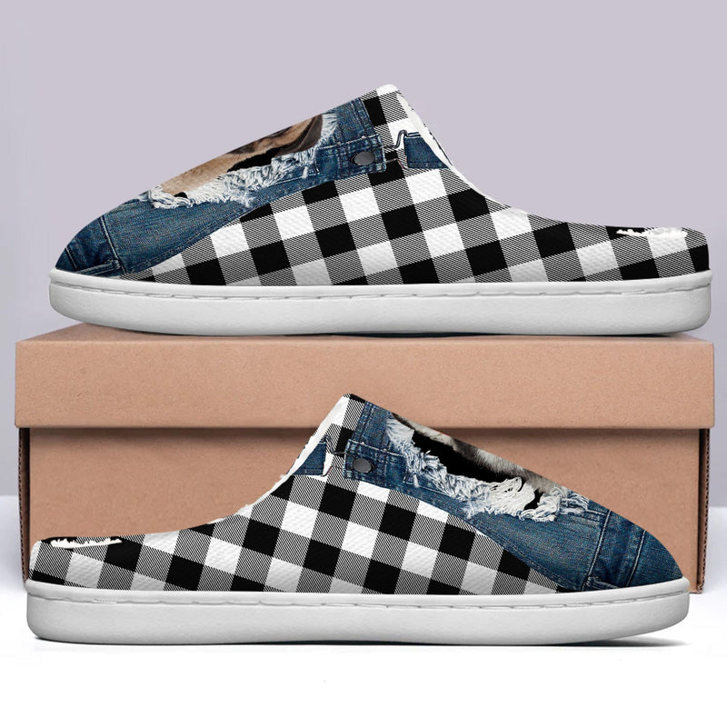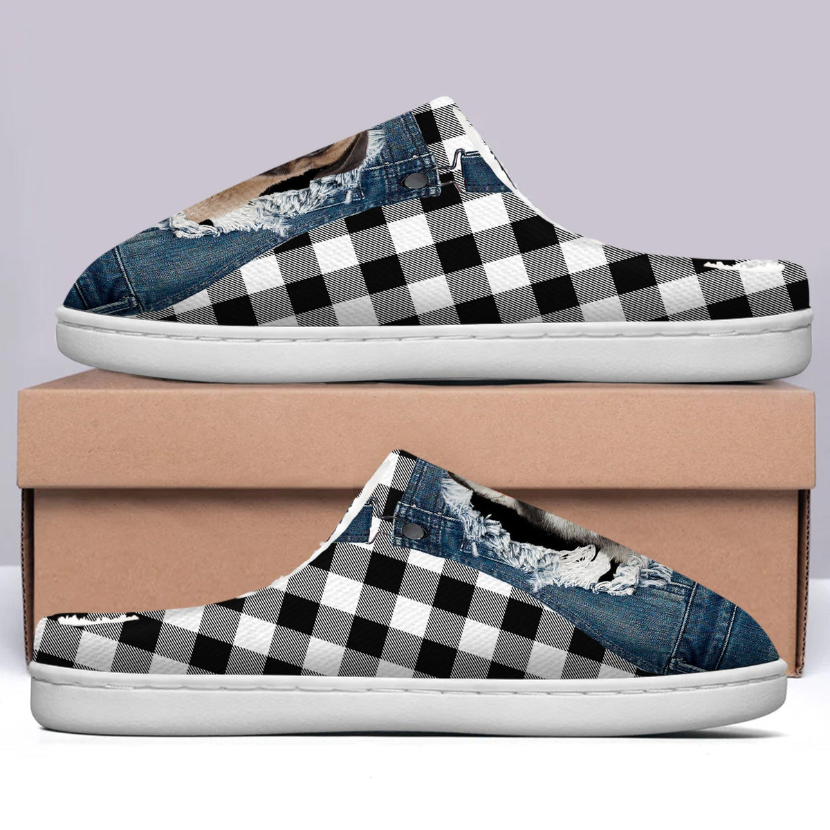 Custom Photo Overalls Pet Face - Gift For Pet Lovers, Pet Mom, Pet Dad - Personalized Fluffy Slippers