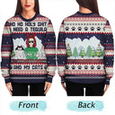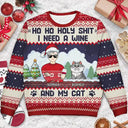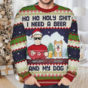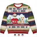 Ho Ho Holy I Need A Beer Funny Cartoon Dog Cat - Personalized Unisex Ugly Sweater