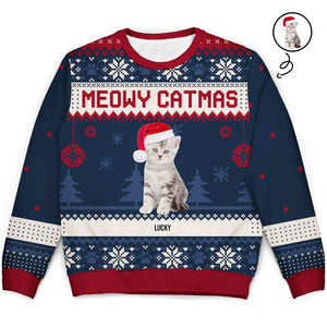 Custom Photo Meowy Catmas Is This Jolly Enough - Christmas Gift For Cat Lovers - Personalized Unisex Ugly Sweater