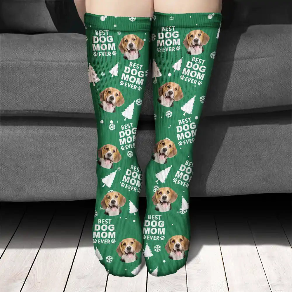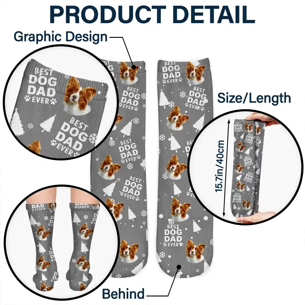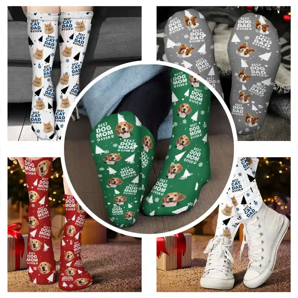 Custom Photo Best Dog Cat Dad Mom Ever Christmas - Personalized Socks