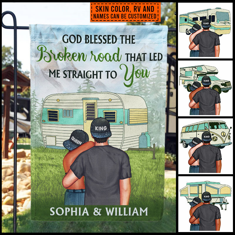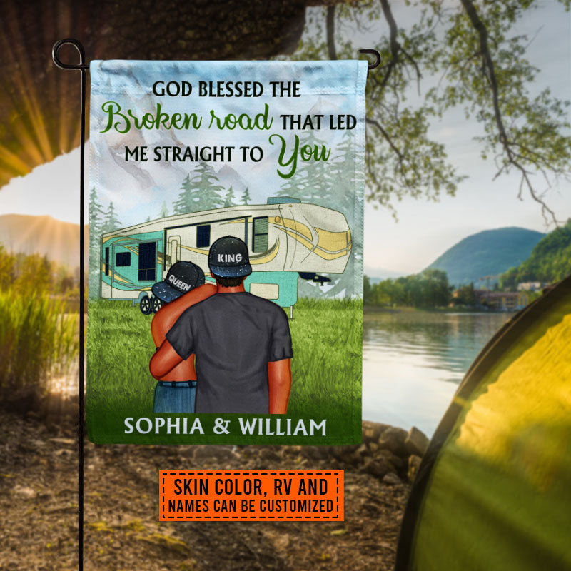Camping Couple Campers Travelers God Blessed Custom Flag