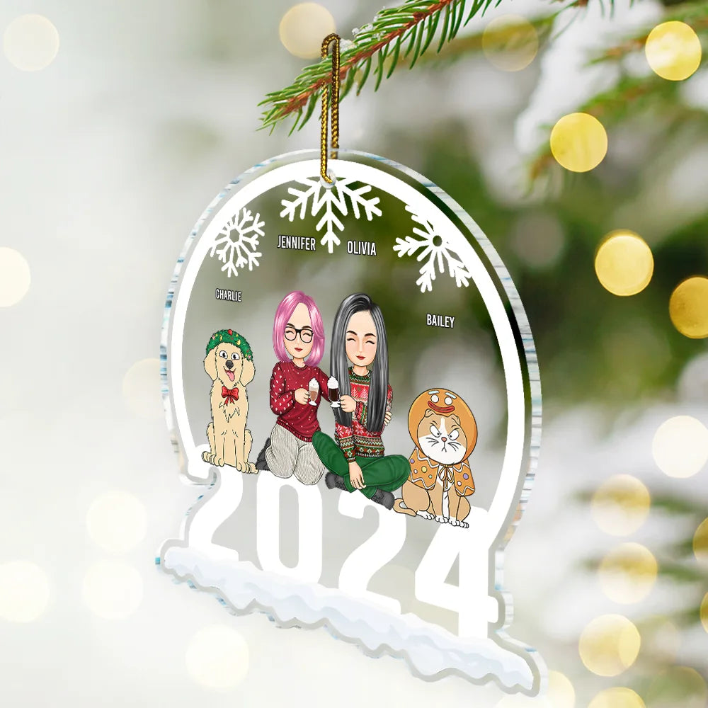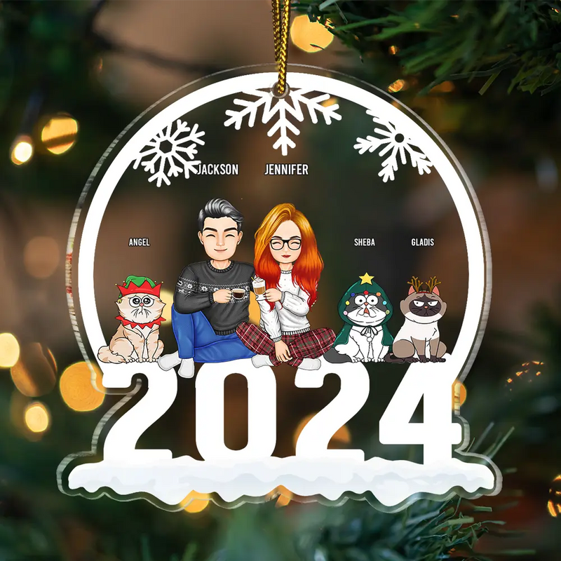 Christmas 2024 Pet Lovers Couple - Personalized Custom Shaped Acrylic Ornament