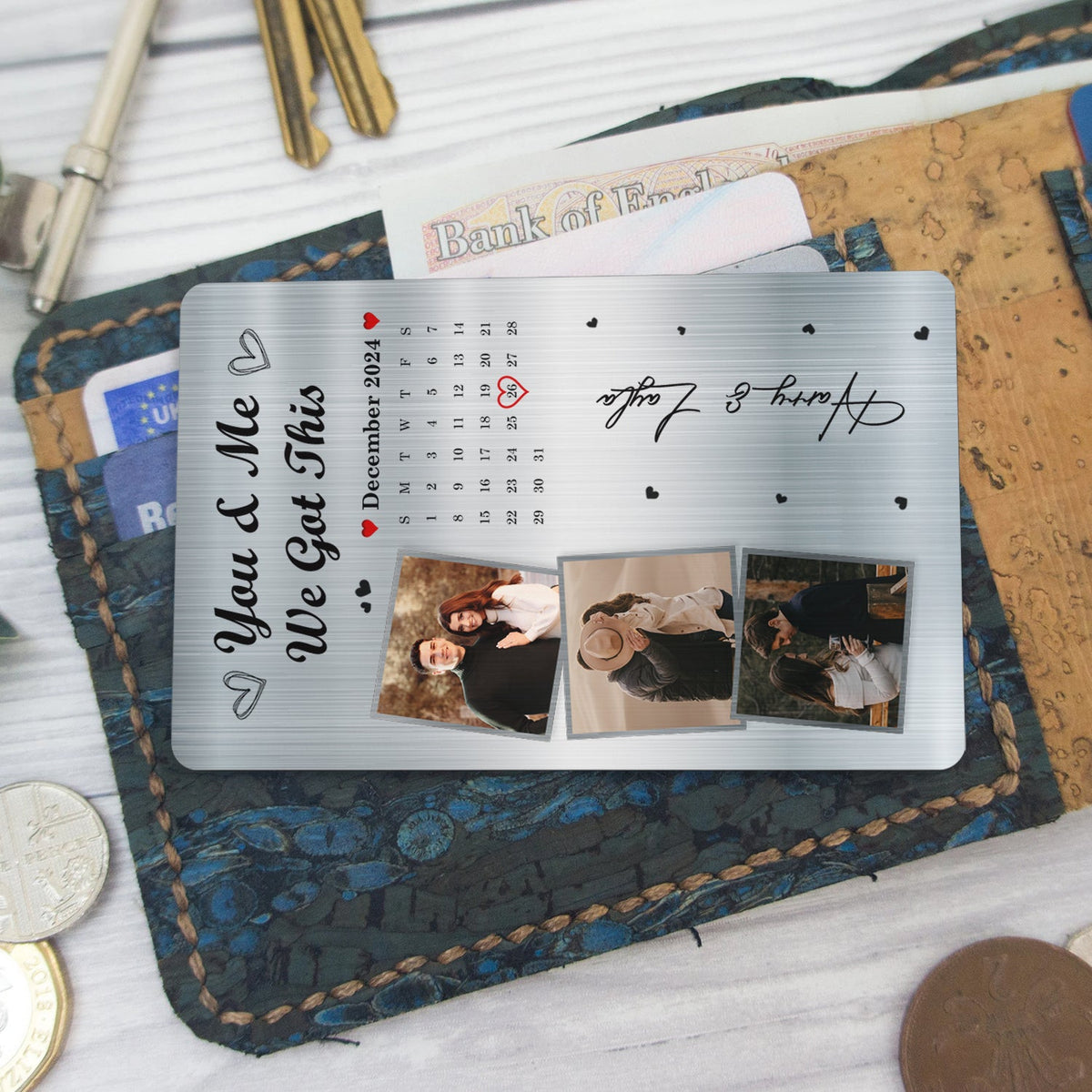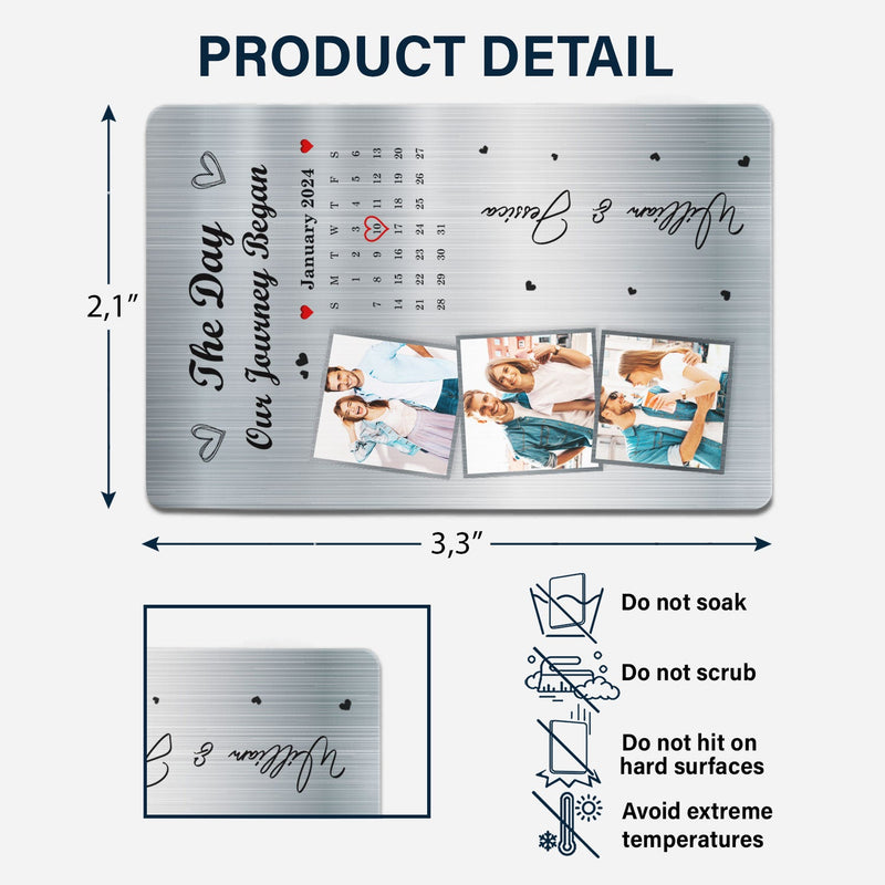 Custom Photo Calendar The Day Our Journey Began - Gift For Couples - Personalized Aluminum Wallet Card