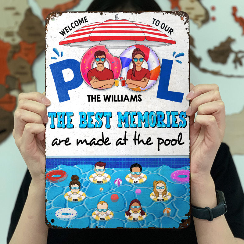 Family The Best Memories Are Made At The Pool - Pool Garden Sign - Personalized Custom Classic Metal Signs