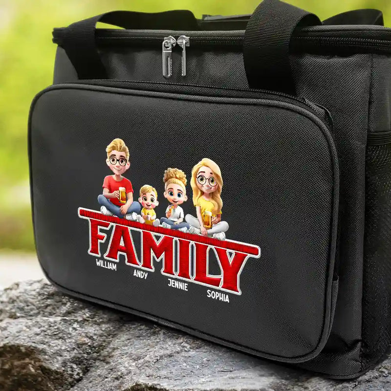 Our Family - Embroidery Text Effect Printed, Personalized Lunch Bag, Cooling Tote
