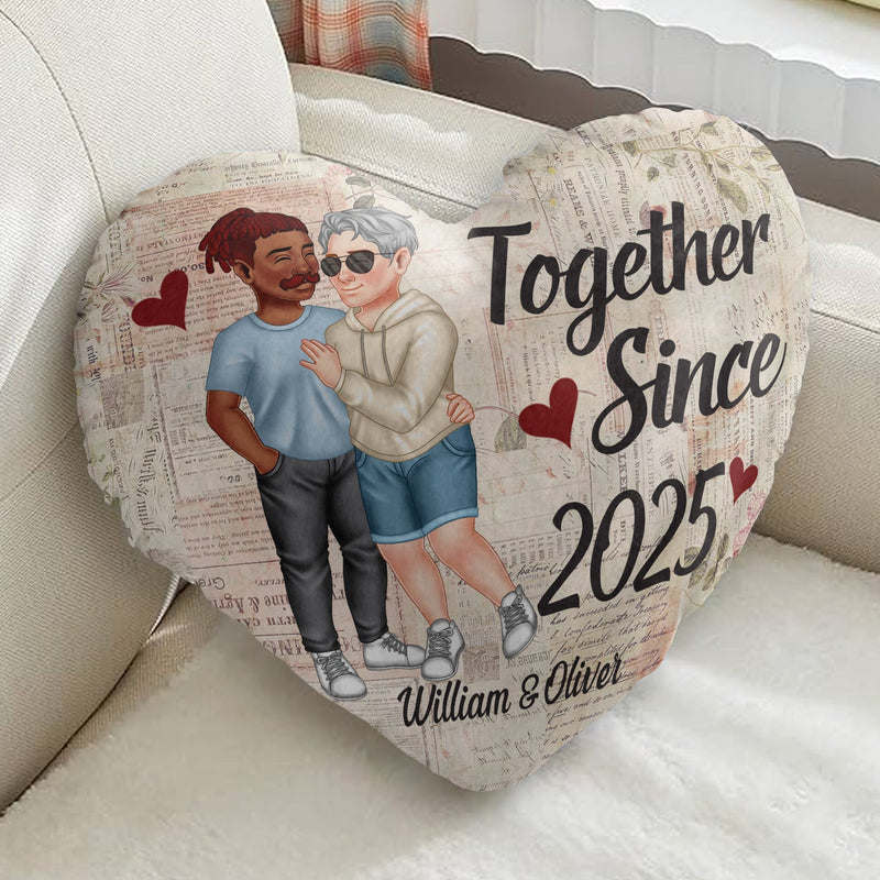 Together Since Arm In Arm - Loving, Anniversary Gift For Couples, Husband, Wife - Personalized Heart Shaped Pillow