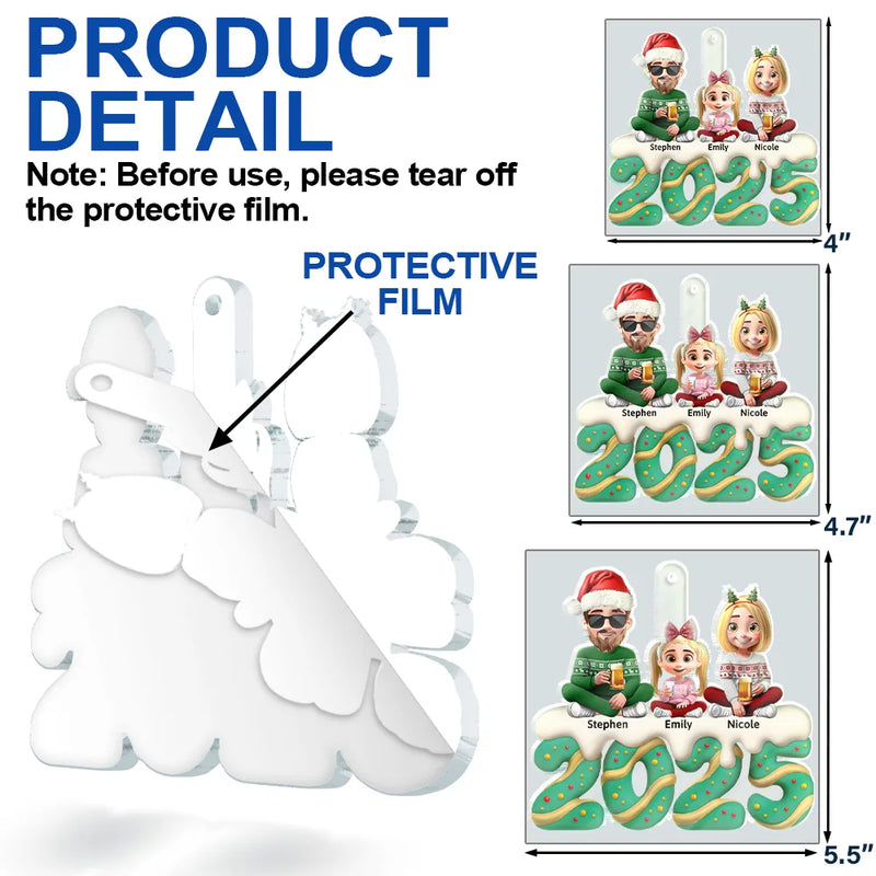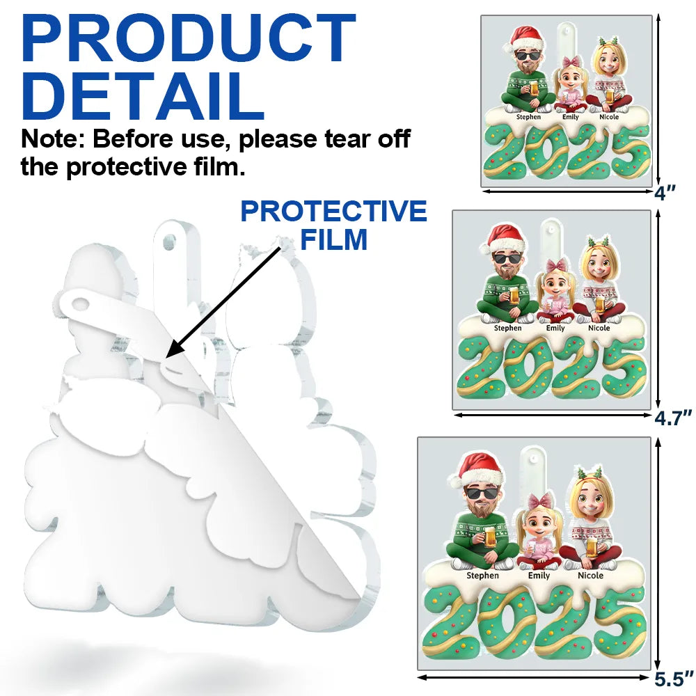 Family Kid Dog Cat Christmas Tree Cake - Personalized Custom Shaped Acrylic Ornament