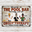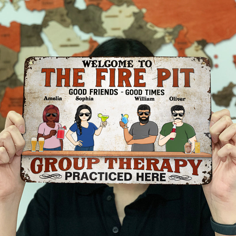 Patio Grilling Group Therapy Practiced Here Family Best Friends - Backyard Sign - Personalized Custom Classic Metal Signs